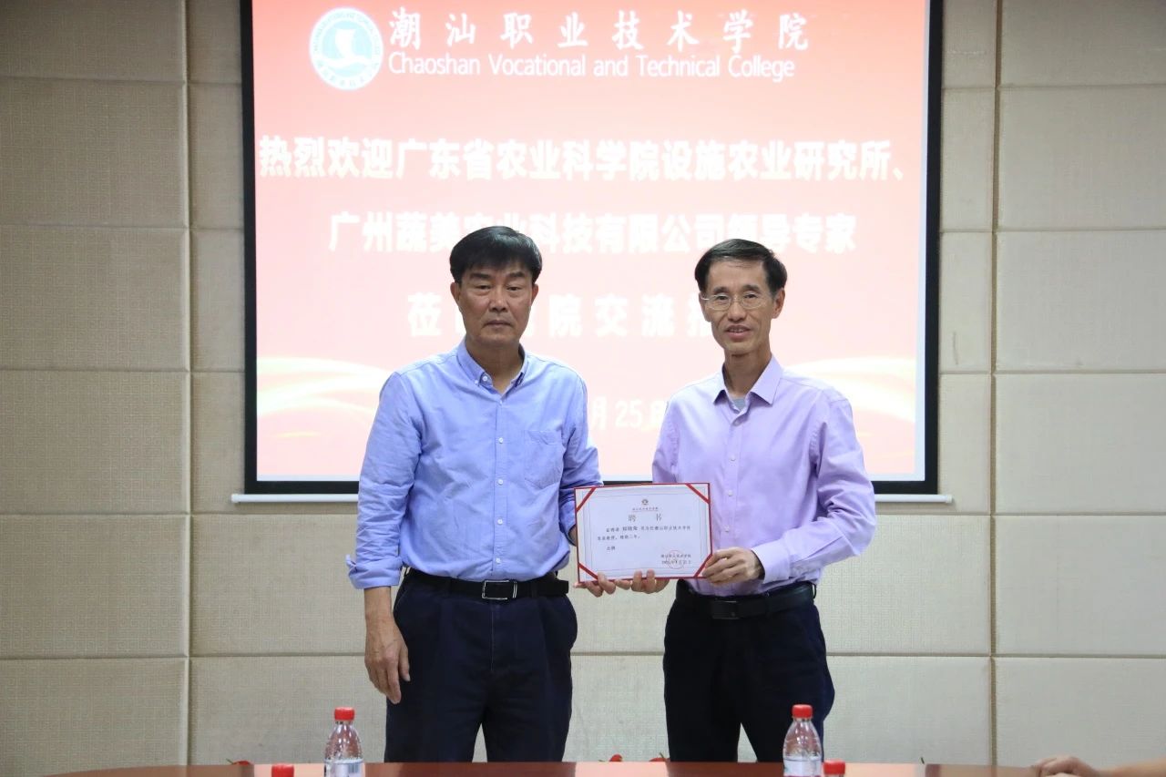 3月25日,广东省农业科学院设施农业研究所专家组与广州蔬美农业科技有限公司代表一行到访潮汕职业技术学院。